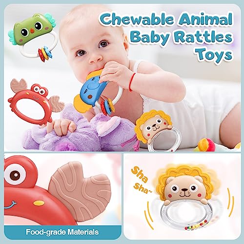 360°Rotating Animal Rattle Toys:The various animal rattle toys are available to take off for baby playing and chewing. These teether toys are made of safe material. 360°slowly spinning crib hanging toys will attract baby’s attention and help to exercise baby’s eyesight.