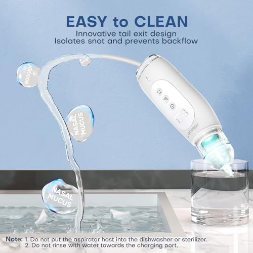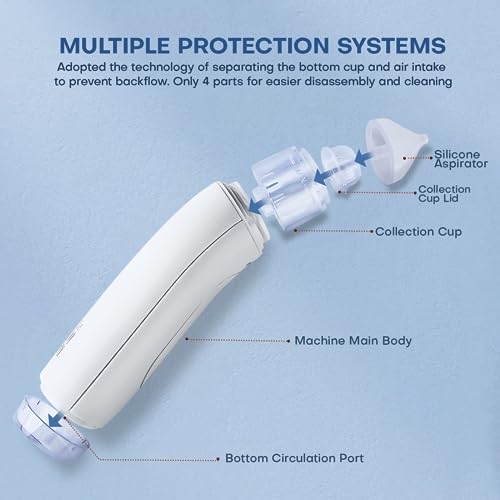 Self-cleaning – Bottom cup of the electric nasal aspirator with LED display is separated from the air inlet to prevent backflow and leakage. Easy to disassemble for cleaning. NOTE: The main unit is not waterproof. If you have any questions, please contact MISSAA.
