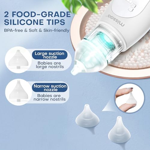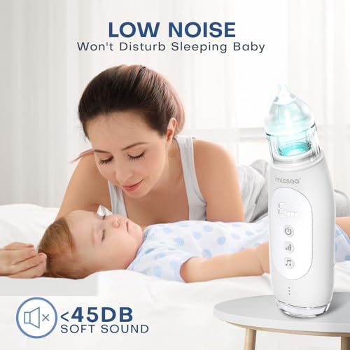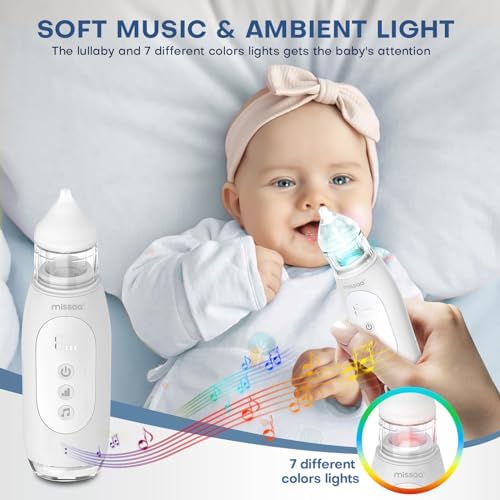 MISSAA Baby Nasal Aspirator Electric, Nasal Aspirator for Baby Toddler with 3 Levels Suction Baby Nose Sucker Self-Cleaning Automatic Nose Cleaner with Pause, Music, Light, White