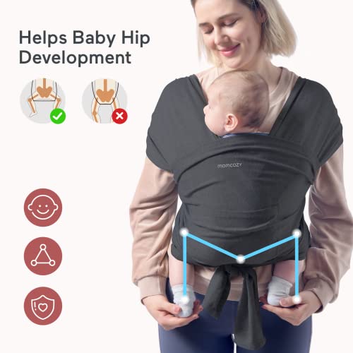 Momcozy Baby Wrap Carrier Slings, Easy to Wear Infant Carrier Slings for Babies Girl and Boy, Adjustable Baby Carriers for Newborn up to 50 lbs, Deep Grey