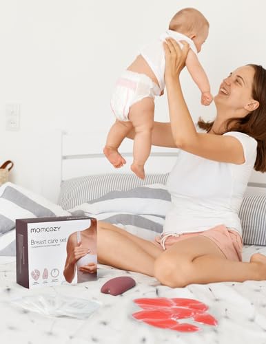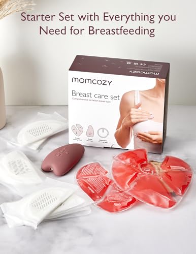 Momcozy Breastfeeding Essentials Care Set-Warming Lactation Massager 2-in-1, 2 Hot and Cold Breast Therapy Packs, 20 Nursing Pads-23 Pieces, New Mom Gifts for Breast Feeding