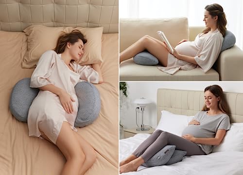 Momcozy Pregnancy Pillows for Sleeping, Portable Maternity Pillow for Side Sleeper, Support for Back, Belly, Hips for Pregnant Women, Adjustable Travel Pregnancy Pillow, Grey