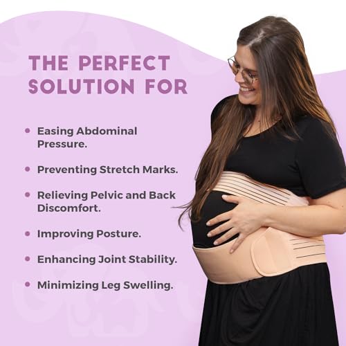 MOMMY O CLOCK Maternity Belt Pregnancy Support, 4 In 1 Breathable Pregnancy Belly Support Band, Adjustable Belly Brace for Waist Back Abdomen, Pre and Postpartum Band (XX-Large, Beige)