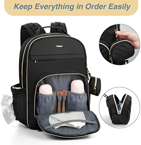 MOMUVO Diaper Bag Backpack, Quilted Baby Bag with Changing Pad & Stroller Straps & Pacifier Case, Large Travel Diaper Bags for Mom Dad, Black