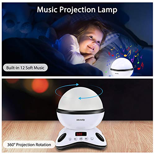 Moredig Kids Night Light Projector, Remote Baby Night Lights for Kids Room with 12 Music Nursery Night Light Projector for Kids Timer 2 Projections 18 Light Modes, Christmas Gifts for Baby – Black