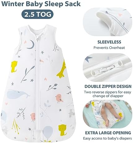Mosebears Sleep Sack Baby Winter Wearable Blanket with 2-Way Zipper,2.5 TOG Cotton Sleep Sack Unisex (White Animal, 6-12 Months)