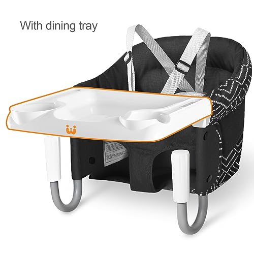 MTWML Hook On High Chair with Tray,Portable Baby High Chair That Attaches to Table,Clip On Fast Table High Chair for Babies and Toddlers.Baby Feeding Seat for Dining Table and Counter(Stripe-Black)