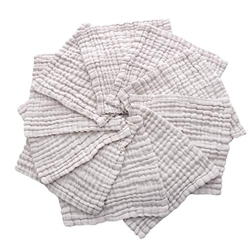 MUKIN Baby Washcloths – Natural Cotton Baby Wipes – Soft Newborn Baby Face Towel for Sensitive Skin- Baby Registry as Shower, 10 Pack 12×12 inches