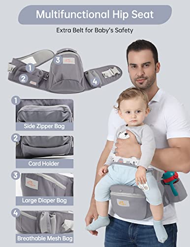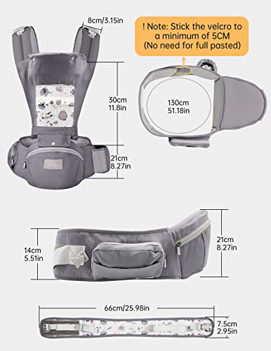 🐳【More Thoughtful Designs】The hip carrier for baby comes with multiple storage pockets for bottles, diapers, wipes, keys, wallet, phone and more. The included hood provides protection from the wind and sun for your baby, and can even be used as a privacy cover for nursing mothers.