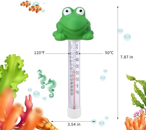 MUMTOP Floating Pool Thermometer, Large Number Easy Read Water Thermometer with String for Indoor Outdoor Swimming Pools, Spas, Hot Tubs and Ice Bath(Frog)