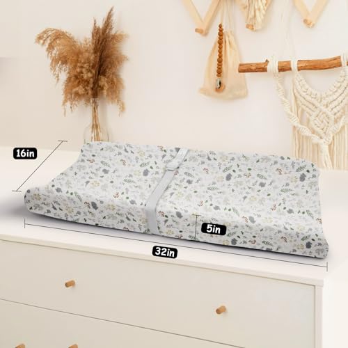 Muslin Changing Pad Cover, Changing Table Pad Cover, Ultra Soft Breathable Boho Changing Pad Sheets Fit for Standard Changing Pad 16″ x 32″, 3 Pack (Roman Green & Forest & Leaves)