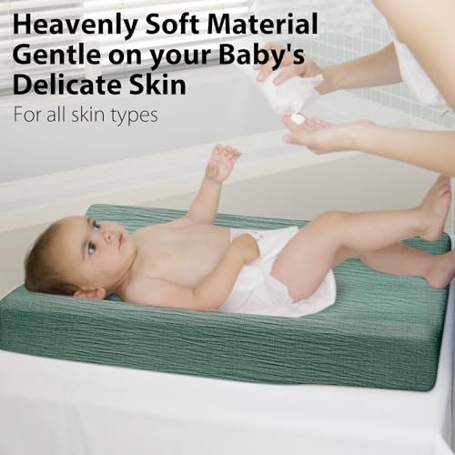 šćSoft & BreathablećMade from 100% cotton pure muslin fabric, these changing pad covers provide a smooth and comfortable surface that’s gentle on your baby’s delicate skin. Crafted with attention to every detail, our heavenly soft, breathable cover allows for proper air circulation and they’re perfect for year-round use – keeping your little one cool in summer and warm in winter.