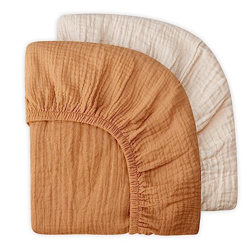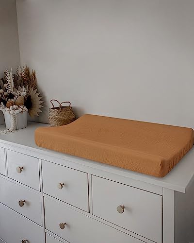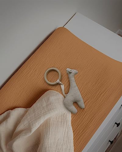 Muslin Changing Pad Cover, Ultra Soft Cotton Diaper Changing Table Covers for Baby Girls Boys, Boho Changing Pad Sheets Neutral, Comfy and Breathable, 2 Pack (Retro Yellow & Beige)