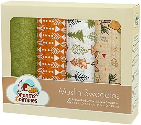 Muslin Swaddle Blankets Babies, Very Soft and Breathable Essential Receiving wrap, Ideal Newborn swaddling Set, Best Shower Gift, 47 X 47 inches