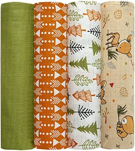 Muslin Swaddle Blankets Babies, Very Soft Breathable Essential Receiving Wrap, Ideal Newborn Swaddling Set, 47 X 47 Inch Into The Jungle (4 Pack)