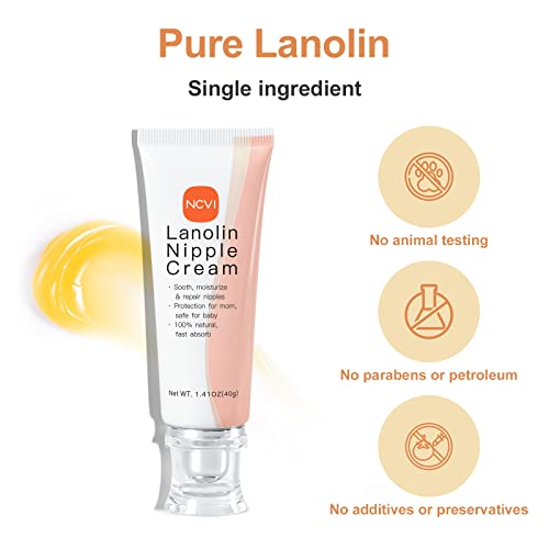 NCVI Lanolin Nipple Cream for Breastfeeding,100% Natural Ingredient -1.41 Ounces