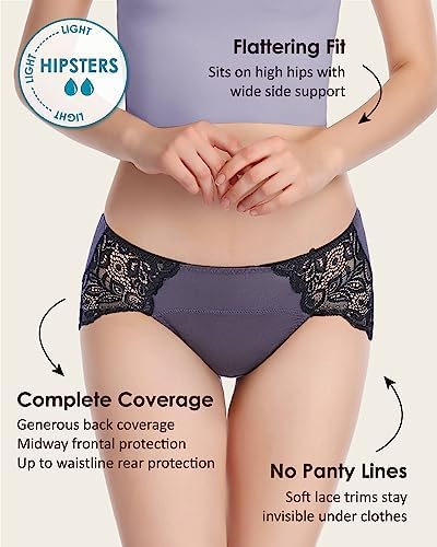 Neione Period Underwear Menstrual Postpartum Panties Women Lace Hipster 3 Pack