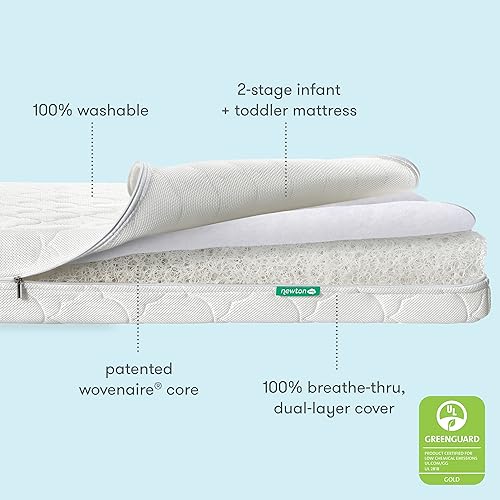 Newton Baby Crib Mattress and Toddler Bed – 100% Breathable Proven to Reduce Suffocation Risk, 100% Washable, 2-Stage, Non-Toxic Better Than Organic, Removable Cover – Deluxe 5.5" Thick- White