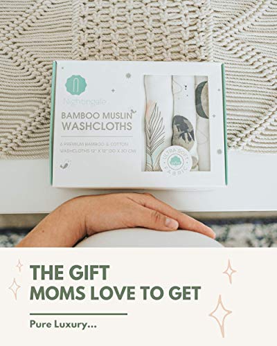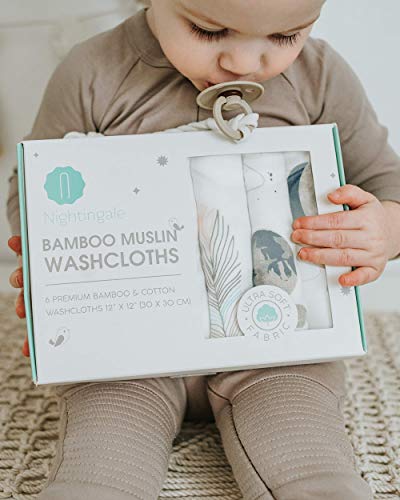 Nightingale Muslin Bamboo Viscose Baby Washcloths – Soft Organic Baby Wash Cloths Perfect for Newborn Sensitive Skin – Absorbent Baby Wipes, Burp Cloths or Face Towels – 6 Pack (Feathers)