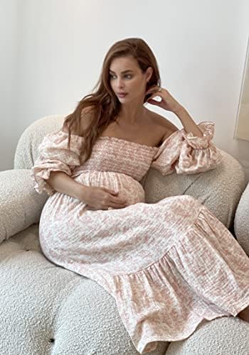 NOTHING FITS BUT Women’s Soft Cotton Muslin Dress, Everyday Stretchable Haru Maternity Gown, Ideal for Photoshoot