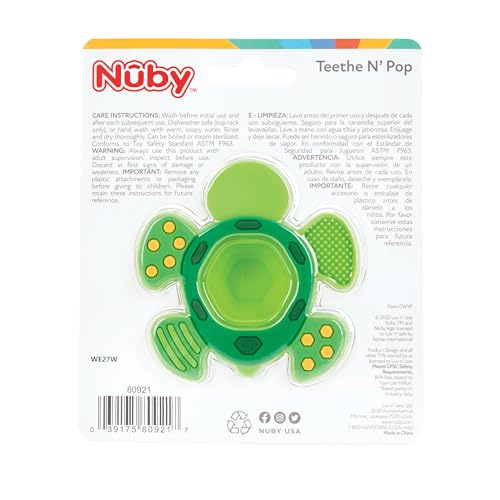 Nuby Teethe N’ Pop Sensory Play Teether, BPA Free, 3+m, Turtle