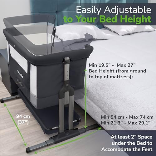 [Safe Cosleeping Arrangement] Adjustable height to fit the parents bed, 2 strong straps to make sure it safely attaches to the bed frame and a strong build that brings about increased safety.