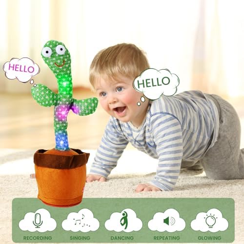 đŸŒ”ă€Educational Gift Toys】Talking cactus toy gift for your kids or friends. This funny toy will definitely make people who reaceive it laught! Mimicking cactus toy can record what you say and keep playing. Dancing singing cactus plush toys, toys for babies toddlers kids 3 years and up, it can slso as a room decoration.