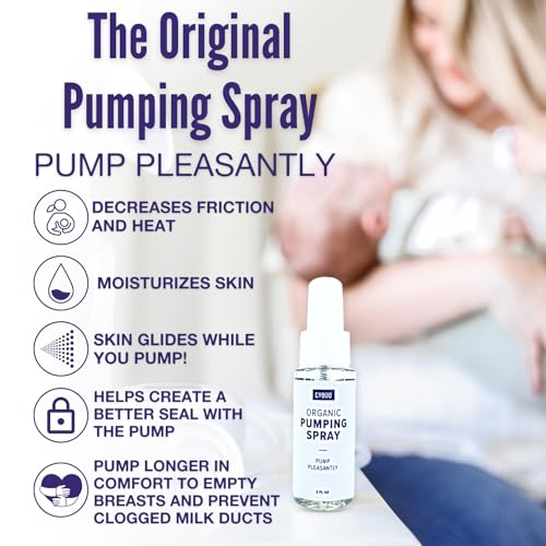 Organic Breast Pumping Spray 2oz, Supports Essential Breast Pump moisturization, Helps Sore Nipples & Clogged Ducts, Breast Pump Lubricant, Pump Spray for Flanges, Vegan, Natural & Lanolin Free