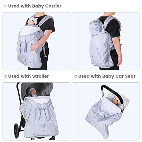 Orzbow Autumn Baby Carrier Cover Universal, Waterproof & Windproof, Breathable Infant Carrier Rain Cover with Sun Hood, Baby Sling Cover with Hood and Zipper for Spring, Autumn & Summer (Grey Rabbit)