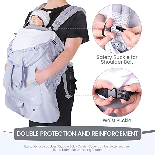 💯 UNIVERSAL & PRACTICAL: Made of Elastic Oxford Buttons, Orzbow Baby Carrier Blanket is suitable for all kinds of baby carriers and easy installtion, whose Back Buckle Design can prevents the cover from being blown away from the back by the wind.