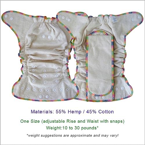 Overnight Hemp Fitted Cloth Diaper: Adjustable One-Size with Snap Buttons and 2 Cotton Hemp Inserts, Unisex Baby (2-Pack)