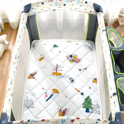 Pack and Play Mattress – 38″ x 26″- Premium Cotton Fabric Playpen Mattresses, Safety Reinforced Play Yard Mattress – Fits for Graco & Baby Trend & Pamo Babe Playard, Firm Support