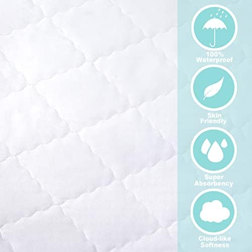 Pack and Play Mattress Protector, Mini Crib Mattress Protector Waterproof Fits for Baby Foldable and Playard Mattress,Portable Mini Crib,Pack N Play Mattress Cover (White, 26″ x 38″)
