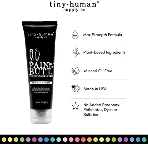 Pain in The Butt MAX Diaper Rash Cream, 3oz, 40% Zinc Oxide, 3-Pack, Natural Ingredients, Petrolatum Free, Soothing, Rapid Relief and Protection for Baby
