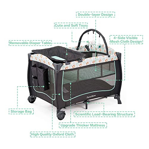 Pamo Babe Portable Crib for Baby Nursery Center Playard Baby Playpen Travel Crib Diaper Changer with Mattress