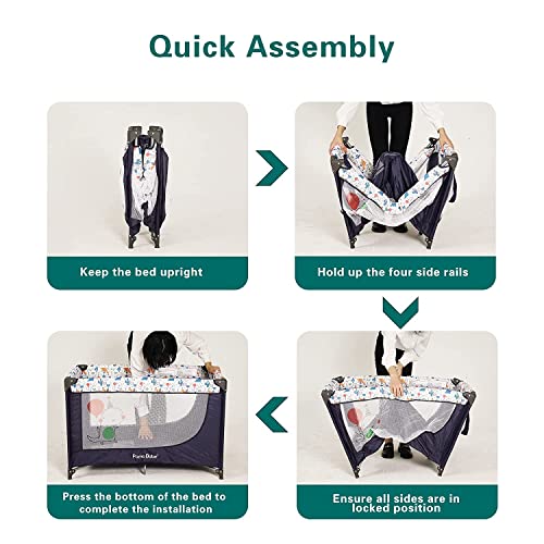 【Easy & Fast Assembly】– For utmost convenience, the baby travel playard does not require extensive setup and can be stored away or reassembled in mere minutes. Just snap the bassinet’s frame in place and the crib is ready for use. Easily collapsible as well, it takes just seconds to pack away or reassemble, without any stress or complicated steps.