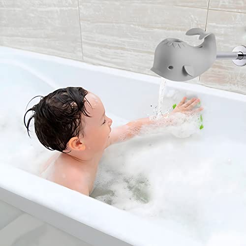 PandaEar Bath Spout Cover, Baby Bathtub Faucet Cover, Baby Shower Protector Cover for Kids Toddlers, Universal Fit -Whale (Gray)