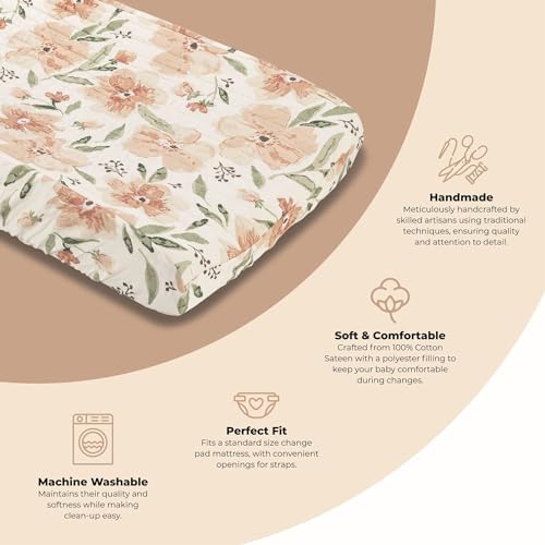 Introducing the Parker Floral Change Pad Cover, a delightful addition to your nursery essentials. This cover features a captivating floral design inspired by nature’s delicate beauty. Crafted for comfort and style with 100% natural cotton, it ensures a cozy changing experience for your baby while adding an elegant touch to their nursery.