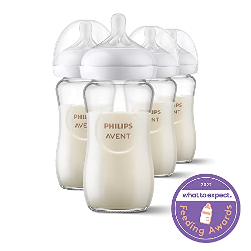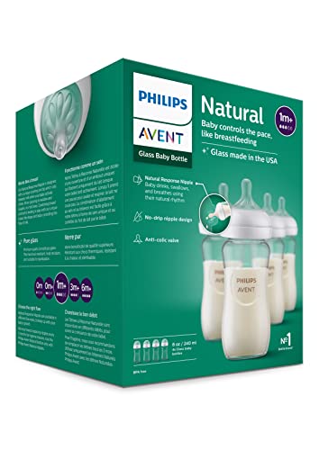 Philips AVENT Glass Natural Baby Bottle with Natural Response Nipple, Clear, 8oz, 4pk, SCY913/04
