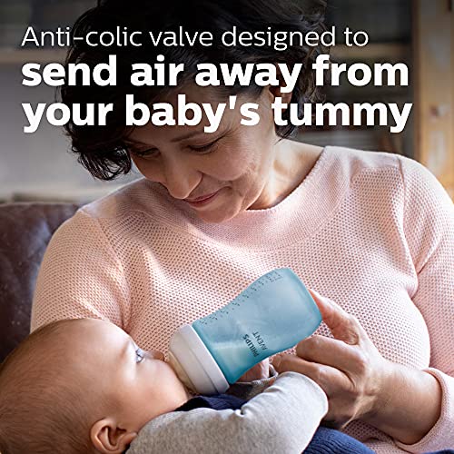 Philips Avent Natural bottle with the Natural Response nipple lets baby control the pace of the milk, like they do when breastfeeding. The nipples’ unique opening and tip only releases milk when your baby actively drinks. When pausing to swallow and breathe no milk flows. Baby can drink, swallow, and breathe using their natural rhythm, just like they do when breastfeeding. Easily combine breast and bottle feeding with a wide breast-shaped nipple with a soft feel that mimics the shape and feel of a breast; plus baby controlling the flow of milk like they do when breastfeeding. The nipple has a no-drip design which helps prevent lost milk from the tip. An anti-colic valve integrated into the nipple is designed to reduce colic and discomfort by sending air away from your baby’s tummy. The ergonomic shape makes it comfortable for parents to hold and easy for small fingers to grasp. Assembly is simple with only a few parts and the wide bottle neck makes filling and cleaning easy. The Natural bottle is made from polypropylene, a BPA free material, and works with all nipples and caps from the Natural line. The Natural response nipples come in flow rates 1-5, to keep up with your baby’s growth. Includes: 4 9oz Blue Natural bottles with Natural Response nipples, flow 3. SCY903/24 What to expect when introducing the Philips Avent Natural Response Nipple It is totally natural for your baby to take 2-3 tries to get milk flowing from a new bottle. Unlike traditional bottles the Natural bottle is designed to only release milk when your baby is actively drinking, like what happens when babies breastfeed. We have 5 different nipple flow rates for the Natural bottle. When looking for the right nipple flow rate, age is a guide, but your baby’s approach to drinking and the feeding cues they will show will help determine when to move to a higher or lower nipple flow rate.