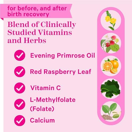 Pink Stork Labor Prep – Evening Primrose Oil Capsules with Red Raspberry Leaf Tea, Labor and Delivery Essentials for Gentle Birth, Third Trimester Pregnancy Must Haves, Postpartum Care, 60 Capsules