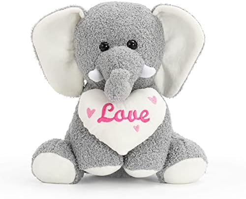 Perfect size: This plush elephant embracing a heart-shaped toy is 9 inches long – a perfect size for endless hugs and cuddles, and 6.3 inches wide – also suitable for display on the table.