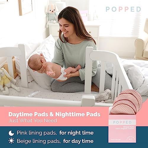Popped Organic Cotton Nursing Pads | Reusable and Washable Breast Pads | Extra Absorbent, Eco-Friendly Breastfeeding Pads | 1 Day Pair, 1 Night Pair (Pink, 4.5″)