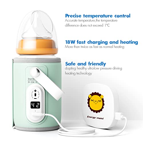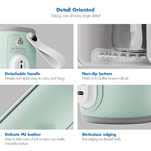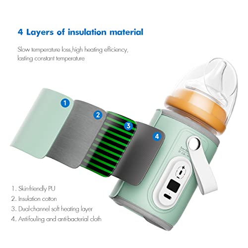 Portable Bottle Warmer, Baby Milk Heat Keeper with LED Display, USB Warmer Bottle for Car Travel, Bottles Warmers on The go (Green)