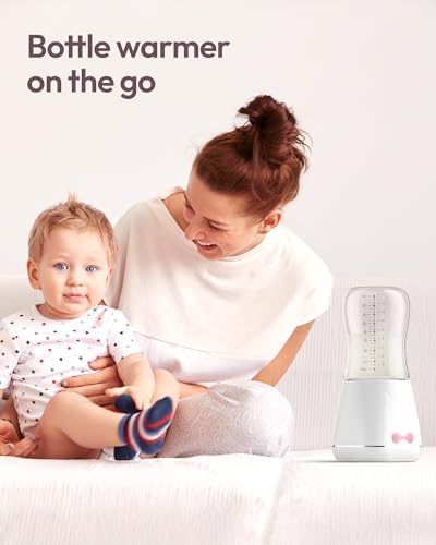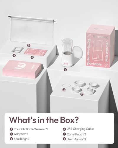 Portable Bottle Warmer, w-maxa Fast Baby Bottle Warmer for Travel with Glass Bottle & 4 Adapters, Rechargeable Bottle Warmer On The Go with Precise Temperature Control for Breastmilk, Formula