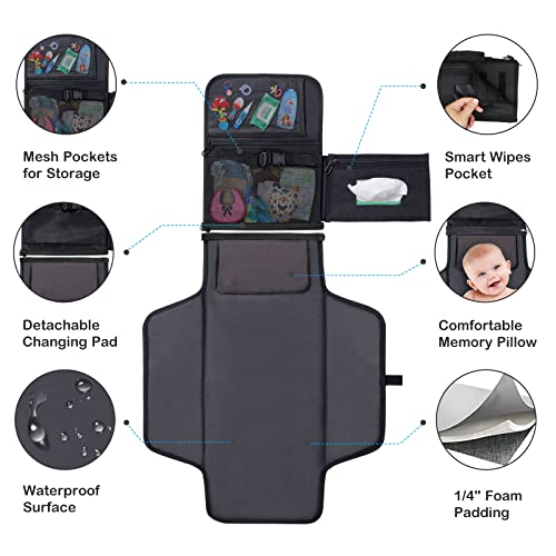 Portable Changing Pad for Baby, Portable Diaper Changing Pad with Built-in Pillow, Waterproof Detachable Baby Changing Pad for Newborn Girl & Boy, Black