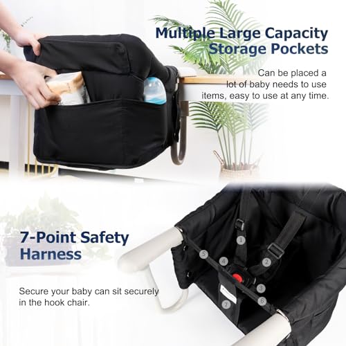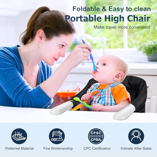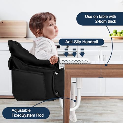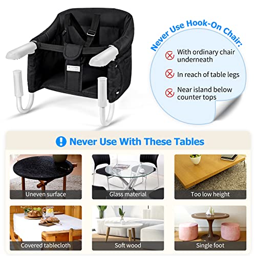Portable Hook On High Chair, Fast Table Chair, Baby High Chair, Travel High Chairs for Babies, Clip on Most Tables for Restaurants, Home and Travel (Black)