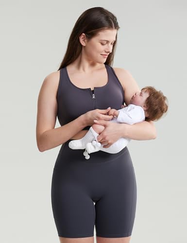 POSHDIVAH Women’s Nursing Bras for Breastfeeding Maternity Sports Front Zip Bra Workout Padded Tank Top