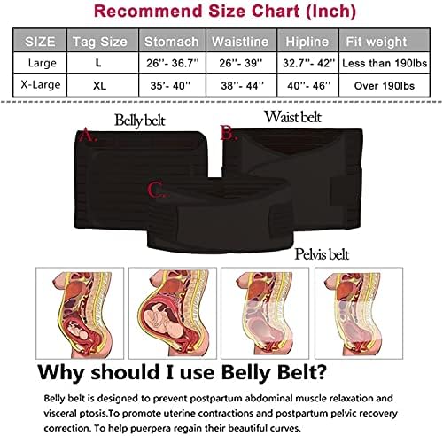 XL size:【Belly belt fits stomach 35″-40″, Waist belt fits waistline 38″-44″, Pelvis belt fits hipline 40″-46″】