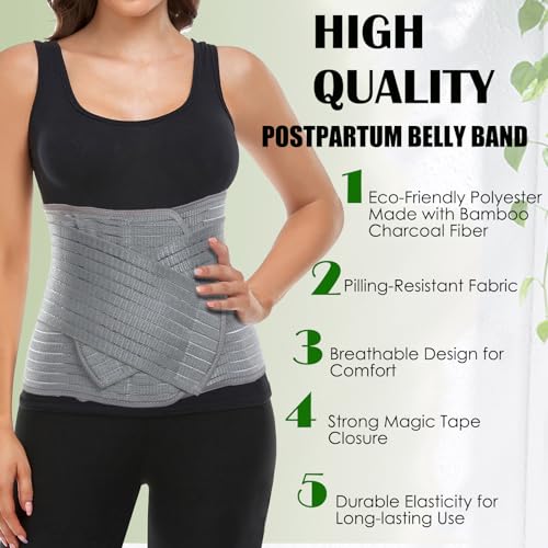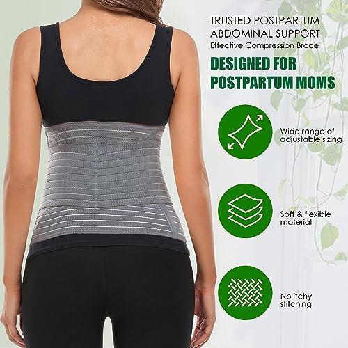 Postpartum Belly Wrap, Postpartum Belly Band, Abdominal Binder Post Surgery Ergonomic 9.5″, Abdomen Hernia Support Belt, Waist/Pelvis Belt for Stomach Support & Back Pain Relief (Polyester Made with Bamboo Charcoal Fiber),S/M